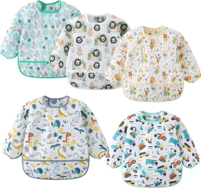Long Sleeve Bibs 5 Pack Waterproof Sleeved Bib Baby Toddler Soft...