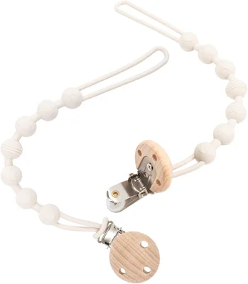 Dummy Clip, 2 Pack Silicone Dummy Clips with Wooden Design Pacifier Holder Clip, Soft Flexible Pacifier Clips for Boys and Girls (White) - Default