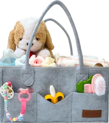 The Essential Baby Caddy is a spacious, sturdy, and portable organizer for newborn essentials.