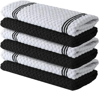 - LONG LASTING: Our kitchen towels maintain their premium feel and classic design even after hundreds of washes, reducing your waste of paper towels. This pack of 6 will allow you always to have a fresh towels handy