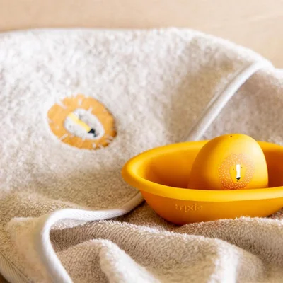 Make bathtime snuggles even sweeter with the Trixie Hooded Towel in the adorable Aura Lion design. Crafted from 100% organic cotton, this towel is beautifully soft and gentle on your baby’s delicate skin. The cosy hood keeps little heads warm while you wrap them up, turning everyday drying into a comforting, bonding moment. With its charming print and breathable terry fabric, it’s the perfect bath time companion from newborn days and beyond.