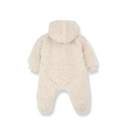 The 1+ In The Family Floriane Polar Suit is a beautifully soft and snuggly outerwear piece for babies, in sizes up to 1 year. Crafted from ultra-soft faux fur fabric, this cosy pram suit is perfect for chilly days in the pram or carrier. It features a plush hood, built-in feet, and ribbed cuffs to help lock in warmth. The tonal buttons up the front make dressing easy, while the gentle colour and texture bring a classic, calming feel to winterwear.