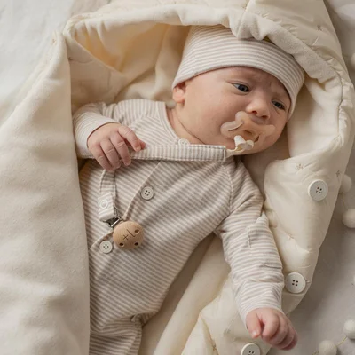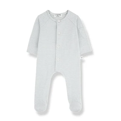 The Philipe Jumpsuit w/feet from 1+ In The Family is a cosy, full-length one-piece crafted in soft striped organic jersey. Designed for all-day comfort, it features covered feet to keep tiny toes warm, a button-up front for easy changes, and a cute mini pocket on the sleeve. A timeless essential for newborns and young babies.