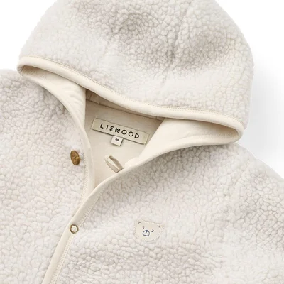 Snuggle your little one in cosy warmth with the Liewood Briley Baby Jumpsuit. Made from soft pile fleece crafted from 100% GRS-certified recycled polyester, this jumpsuit is gentle on the skin and kind to the planet. The hood keeps little heads snug, while press buttons down the centre and legs make dressing and changing simple. Fold-over cuffs at the sleeves and legs ensure tiny hands and feet stay perfectly warm during chilly days.