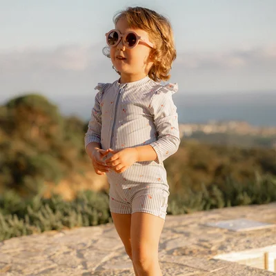 This sweet long-sleeved swimsuit from Little Dutch is made for sunny seaside play and splash-filled fun. With its soft blue Sunny Flowers design – featuring stripes and delicate flowers – it’s perfect for little beach explorers. Long sleeves offer added protection for delicate skin during outdoor adventures, while the front zipper makes dressing easy, even after a dip in the sea. Made from soft, stretchy recycled fabric, it’s comfy to wear and kind to the planet too.