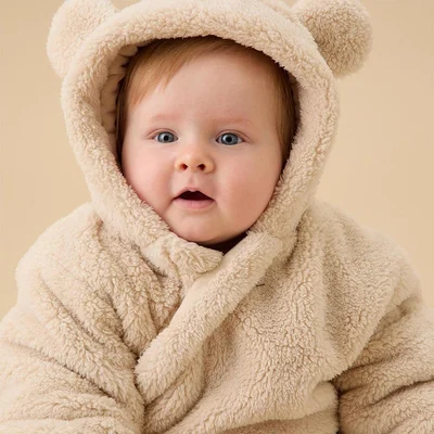 Snuggle up your little one in pure warmth and cuteness with the MORI Soft Borg Pramsuit in Taupe. Crafted from ultra-soft, recycled polyester, this pram suit is designed for ultimate comfort and warmth on colder days. With its adorable bear ears on the hood and a plush borg fabric that feels like a cuddle, this pram suit is as cosy as it is charming. The oversized fit and elasticated cuffs ensure that your little one stays snug while looking extra stylish on their winter adventures.