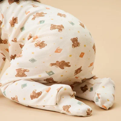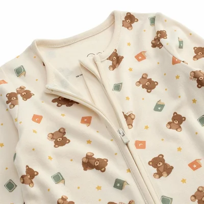 MORI Teddy Bear Two Way Zip-Up Sleepsuit - Teddy Bear Print