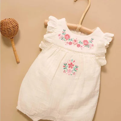 Make every moment extra special with the Purebaby Embroidered Romper in Cloud. This charming romper features delicate floral crochet and embroidery, paired with flutter sleeves trimmed in broderie anglaise lace for a soft, feminine touch. Its balloon-style design with gentle gathers around the legs ensures a comfortable fit for little ones, while snap closures at the back and legs make dressing and diaper changes quick and easy. Crafted from 100% organic cotton muslin, itβs lightweight, breathable, and gentle on delicate skin - perfect for celebrating milestones or everyday moments in style.