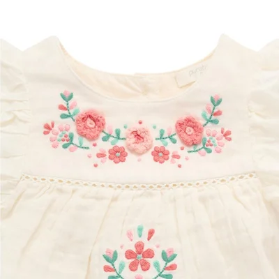 Purebaby Embroidered Romper - Cloud