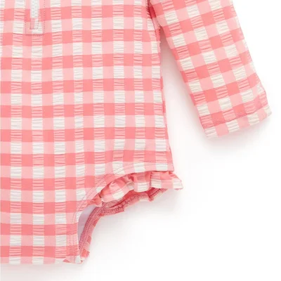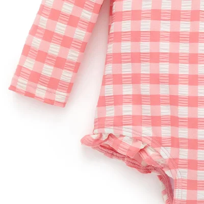 Purebaby Printed Frilly Long Sleeved Swimsuit - Pomegranate Gingham