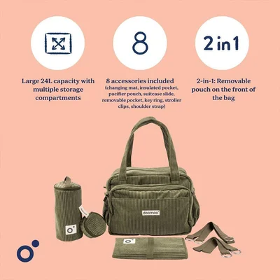 Meet the Doomoo Fluffy Changing Bag - the stylish, ultra-practical essential that makes every outing with your little one beautifully organised. Designed with parents in mind, it offers a generous 24l capacity to carry everything from nappies and bottles to your own daily must-haves. Inside and out, you’ll find plenty of handy pockets so every item has its place and is easy to reach. The Fluffy also comes with 8 thoughtful accessories, including a changing mat, insulated pocket, pacifier pouch, stroller clips, and a detachable mini bag for quick trips. Crafted from soft corduroy with a modern nude tone and rounded silhouette, this changing bag blends practicality with timeless style. The sweet embroidered message 'You’re doing great' is a gentle reminder that you truly are. Machine washable for easy care, the Fluffy Changing Bag keeps every adventure calm, organised, and effortlessly chic.