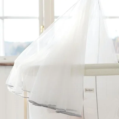 The BabyBjörn Canopy for Cradle is a beautifully simple accessory designed to make your baby’s sleep space feel even more snug, calm, and protected. Crafted from sheer mesh fabric, the canopy gently softens bright light and visual distractions, helping your baby settle into deeper, more peaceful sleep, without compromising airflow. Lightweight and airy, the mesh allows air to circulate freely while creating a cosy, cocoon-like environment. When wrapped fully around the cradle, the canopy also doubles as a mosquito net, offering added reassurance during warmer months or when windows are open. Designed specifically for the BabyBjörn Cradle, the canopy is easy to attach and remove, making it a practical everyday addition. When it needs freshening up, simply remove the fabric and place it in the washing machine for effortless care. Made from OEKO-TEX®, baby-safe materials, the BabyBjörn Canopy for Cradle offers a gentle way to enhance your baby’s comfort while maintaining a safe, breathable sleeping environment.