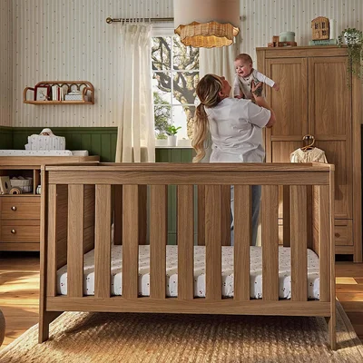 The CuddleCo Burford Cot Bed offers a calm, comfortable, and adaptable sleep space for your little one. Designed to grow with your child from birth to approximately 5 years, it features three adjustable mattress heights and converts smoothly into a toddler bed, supporting every stage of early development. With its warm oak-effect finish, the Burford Cot Bed brings a natural, timeless look to the nursery that blends seamlessly with other furniture and décor. Crafted for long-term use, it’s practical, durable, and rigorously safety-tested to give parents peace of mind.