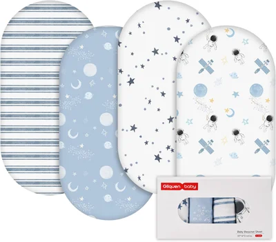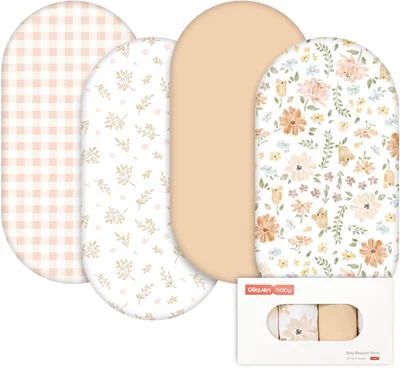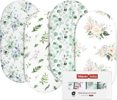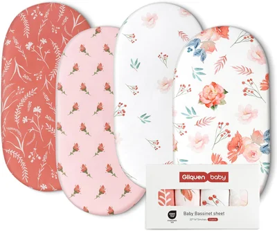 GLLQUEN BABY 4Pack Moses Basket Fitted Sheets