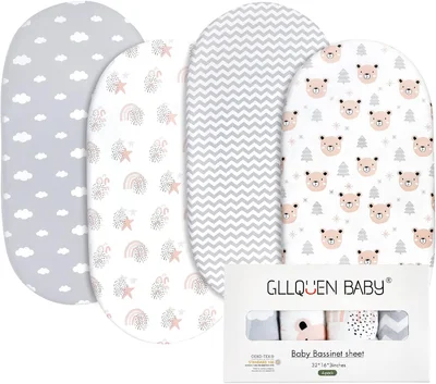 - 【PLAYFUL DESIGNS TO PROVIDE DELIGHT TO YOUR LITTLE ONE】— GLLQUEN BABY basket fitted sheets provide multi-pack nature’s playful creatures in the designs fit in almost any decor and provide delight to your little one’s curious eyes. The gender neutral designs make them ideal bassinet sheets for baby girl or boy.
