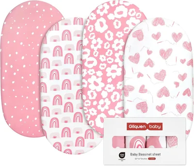 GLLQUEN BABY 4Pack Moses Basket Fitted Sheets, Newborn Pram Sheets Fitted, 100% Microfiber Oeko-tex100 Cozy and Breathable Crib Baby Bassinet Sheets for Boy and Girl, Easy Care Soft Fitted Sheet