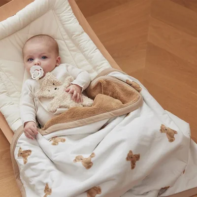 A timeless gift for little ones, the Jollein Jersey Blanket combines everyday comfort with a sweet teddy bear design. Soft, breathable and beautifully made, itβs the perfect blanket for snuggles, naps, or trips out in the pram. A thoughtful choice for new parents, this versatile piece will be treasured from day one.