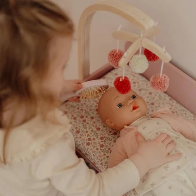 Create sweet, caring moments with the Little Dutch Doll Changing Table. This charming set includes a gentle mobile, a super-soft changing mat with a dreamy design, and lovely wooden care accessories to nurture your little one’s imagination. The changing table also comes with a diaper, cosy sleeping bag, and adorable clothes hangers - perfect for keeping your doll’s outfits neat and tidy. With a handy cabinet for extra storage, everything your child needs to lovingly care for their doll is right at hand. A beautiful way to encourage nurturing play and tender role modelling.