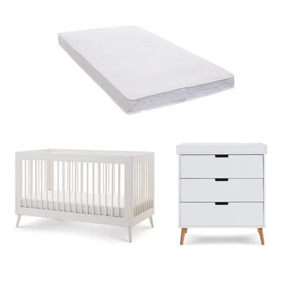 Obaby Maya 2 Piece Room Set - Nordic White - Moisture Management Mattress
