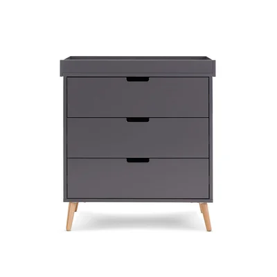 The Obaby Maya Mini 2 Piece Room Set in Slate + Natural is inspired by Scandinavian design, featuring a clean-cut finish and two-tone colourway, making it the perfect addition for families looking to create a modern and stylish nursery. The Maya 2 piece room set consists of the Maya mini cot bed and changing unit. Featuring the same aesthetic and high-quality finish of the regular-sized cot bed, the Maya Mini cot bed means families with a more compact nursery do not have to compromise when looking for a space-saving alternative. Suitable from birth, the Maya Mini cot bed will grow with your little one. The top position of the three height-adjustable mattress base allows you to put your baby down with less pressure and strain applied to your back and as they develop and start to find their feet, you can maintain their safety by lowering the base. When your little one is ready to begin their transition, the included dual-ended safety rail will provide reassurance and familiarity and once they are used to their big bed this can be simply removed to create a stylish toddler bed. The Maya changing unit is the perfect storage companion with recessed handles, enabling you to easily put away and quickly locate your little one’s belongings. On top of the unit is a changing area that can be removed to create a stylish, flat-top chest of drawers that can be used for years to come. The Optional mattress choices are fantastic for providing your little ones with optimum support. The Moisture Management Dual Core Mattress offers an impressive four sleep options thanks to the reversible core and cover meaning you can always choose the best combination for a perfect night’s sleep. The Pocket Sprung Mattress features individual pocket springs that are cleverly integrated to give increased support to your little ones' back, neck and head during sleep. Promoting perfect posture and sweet dreams for your little one.