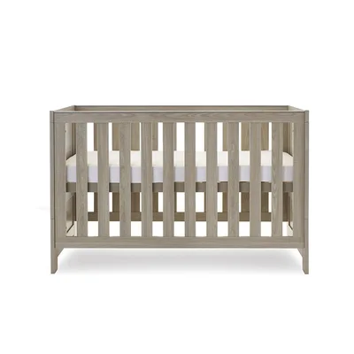 The Obaby Nika Cot Bed in Grey Wash offers a contemporary design, due to its clean lines and textured oak effect finish, that will fit perfectly in today’s modern nursery. The Nika cot bed has three mattress base positions, the highest allowing you to put down and pick up your newborn without straining your back through unnecessary bending. As your little one starts to develop and become more active, the mattress base can then be lowered by a further two positions keeping them safe and secure at all times while the teething rails protect their delicate first teeth. When your little one is standing confidently, the Nika can be easily transformed into a stylish toddler bed that still offers the familiarity they are used to and helps them to transition in an often-daunting time. Once transformed the toddler bed can be used until they are approximately four years old. Requires an Obaby 140 x 70cm mattress. The Optional mattress choices are fantastic for providing your little ones with optimum support. The Moisture Management Dual Core Mattress offers an impressive four sleep options thanks to the reversible core and cover meaning you can always choose the best combination for a perfect night’s sleep. The Natural Coir/Wool Mattress provides a naturally springy feel whilst being extremely resilient, durable and breathable. Topped with a soft and luxurious lambswool that regulates body temperature and moisture for maximum comfort as well as being naturally hypoallergenic. The Pocket Sprung Mattress features individual pocket springs that are cleverly integrated to give increased support to your little ones' back, neck and head during sleep. Promoting perfect posture and sweet dreams for your little one.
