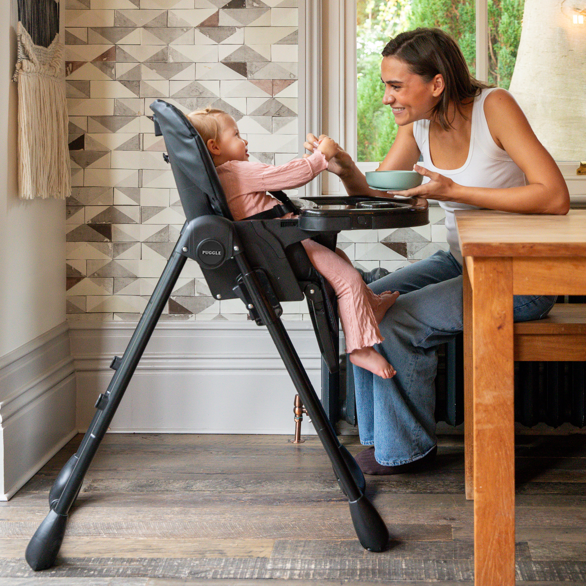 The Puggle Foodie Eat & Play 9-in-1 Hi-Lo Highchair is a versatile feeding solution that grows with your child from birth to toddlerhood.