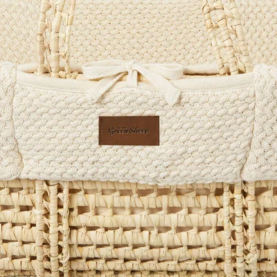 The Little Green Sheep Wheat Knit Moses Basket and Rocking Stand Bundle - Linen / Natural