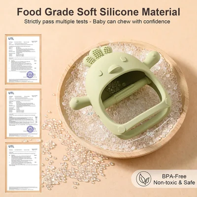 - [Safe Material] - Silione baby teether mitten is made of BPA-free food-grade silicone, non-toxic and odorless, certified by Children's Products, and can be used in dishwashers and refrigerators. High temperature is resistant to sterilization in hot water and steam sterilizers. Simply rinse with tap water after each use