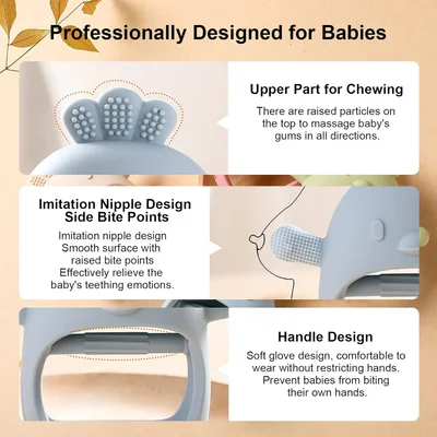 - [Relieve Baby's Teething Pain] - The teether is designed with bumpy massage particles, which can help relieve discomfort during teething and prevent the baby from sucking and chewing fingers. Protect the baby's delicate gums and promote tooth development