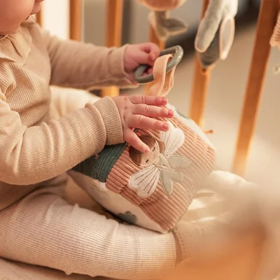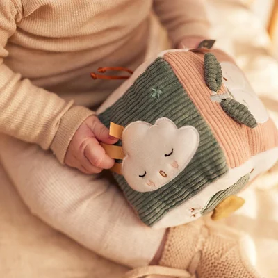 This delightful activity cube in the Lovely Birds theme is full of colour, texture, and fun. With embroidered birds, clouds, flowers, and fairy Amy, little hands can explore wings, tags, and cords while developing motor skills and curiosity. Soft, safe fabrics make play worry-free, while the engaging design provides hours of sensory stimulation and endless fun for your baby.