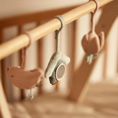 Turn playtime into a sensory adventure with the Jollein Babygym Toys – Lovely Birds. This charming set includes a sweet birdhouse, a playful flower, and an adorable little bird, each with its own textures, sounds, and details to delight curious hands and eyes. Designed to easily attach to a babygym with handy Velcro closures, these toys encourage your baby to reach, grasp, and explore. With gentle sounds and playful features, like the little bird’s soft cords, it’s the perfect way to keep your little one engaged while supporting their early development.
