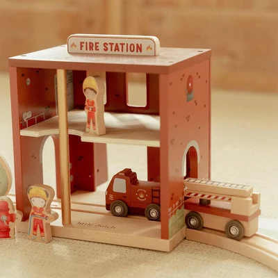 The Little Dutch Fire Station is the perfect base for exciting rescue operations. With openable doors, a fire pole to slide down, and a fire truck ready to roll, your little firefighter will be ready for any emergency. This set comes complete with firefighters, flames, and a burning trash can, so your child can save the day in no time. For even more fun, pair it with the Little Dutch XL Wooden Train Track for a full adventure.