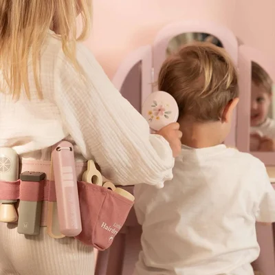 The Little Dutch Wooden Hairdresser Set has everything your little one needs to style, cut and create just like a real hairdresser. Packed neatly in a soft adjustable pink waist belt, it comes with professional pretend-play tools including toy scissors, a hairdryer, hair straightener, clippers, brush, shampoo, hairspray and even a mirror. Perfect for sparking imagination and role play, this set encourages creativity, storytelling and social play.