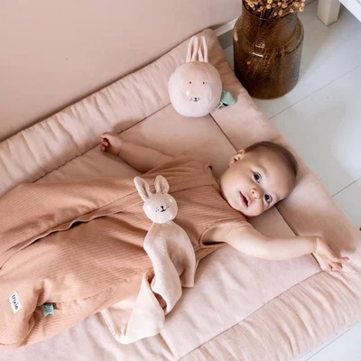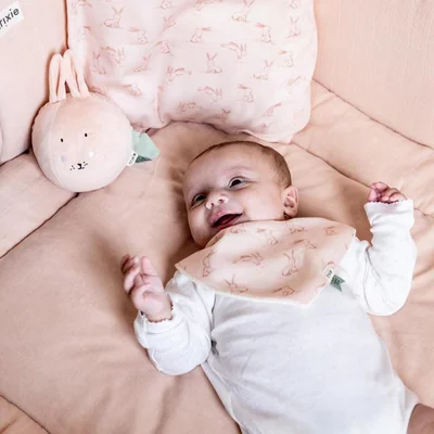 Mrs. Rabbit is your baby’s new soft and cheerful playtime friend. With her gentle jingle bell and a mix of lovely textures, this cuddly sound ball encourages little ones to reach, roll, and crawl. Crafted from organic cotton and recycled materials, she’s designed to nurture your baby’s senses while providing endless fun. Light, huggable, and perfect for little hands to explore, Mrs. Rabbit turns every play session into a sensory adventure.